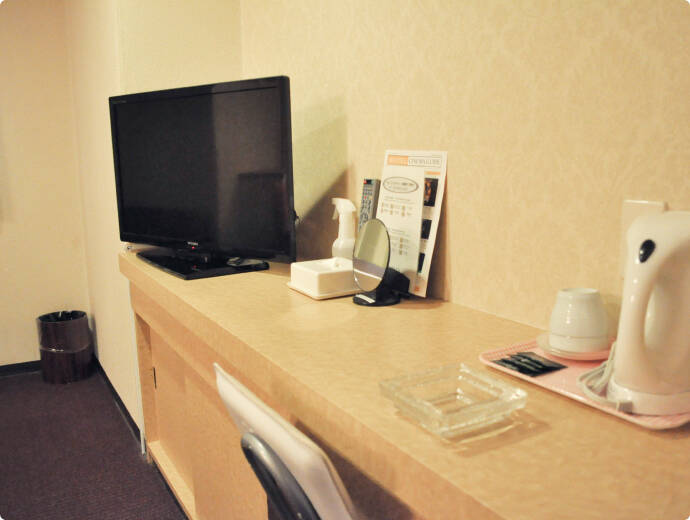 ホテルに足を踏み入れた瞬間、目に飛び込むのは木目の美しいフロントデスク。