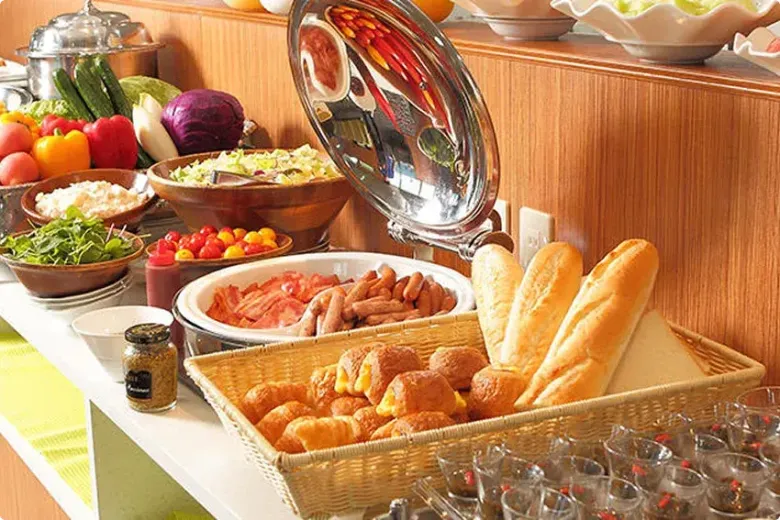 地元食材にこだわった和洋中バイキング形式の朝ごはんをお楽しみください。